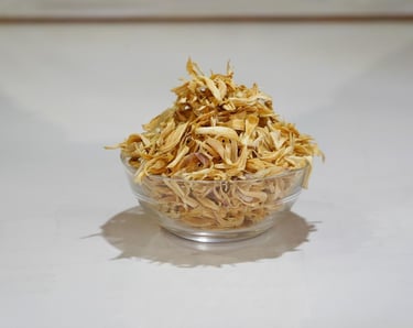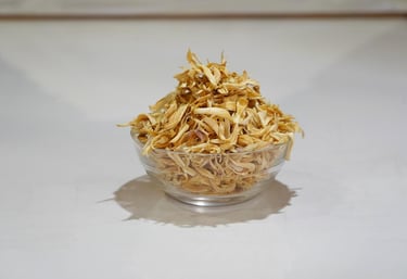 Dehydrated garlic flakes are made from high-quality fresh garlic that is sliced and dried to preserve its taste and nutrients.