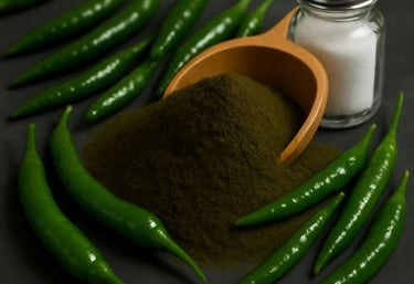 Prepared from fresh green chillies, our green chilli powder delivers an authentic spicy kick and natural green color